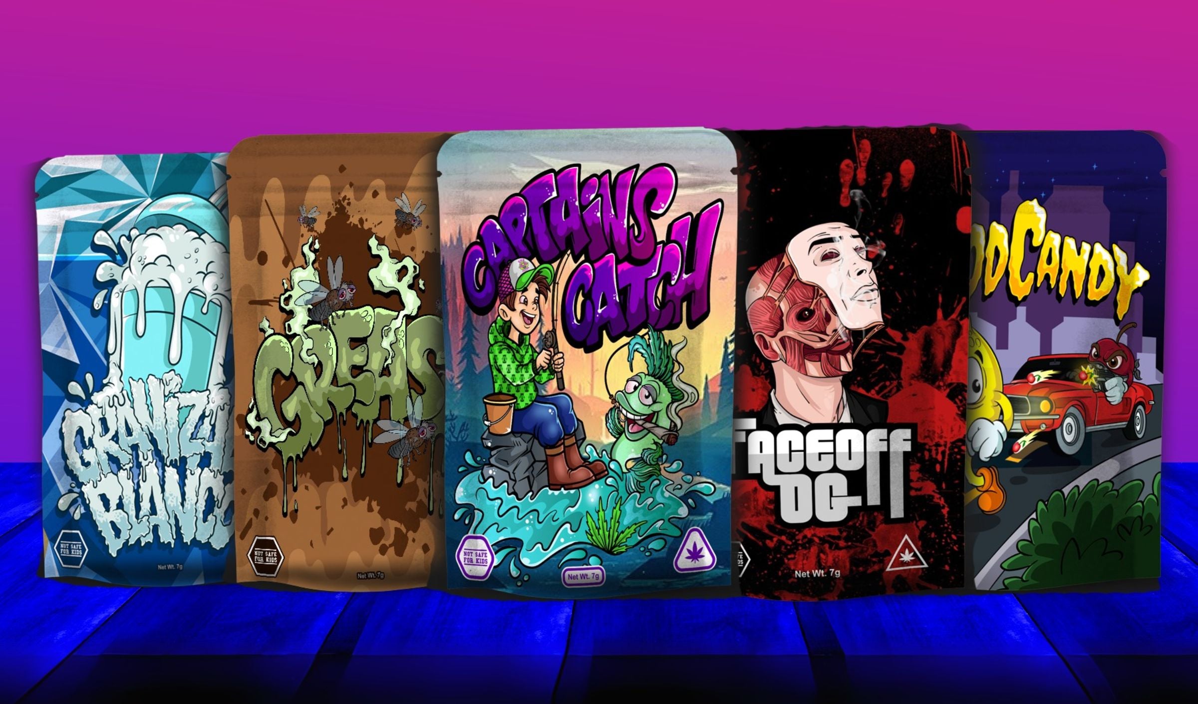 Stand out with high-quality Mylar bags, pre-roll tubes, and labels — printed in the USA. Fast turnaround • Low minimums • Premium finishes